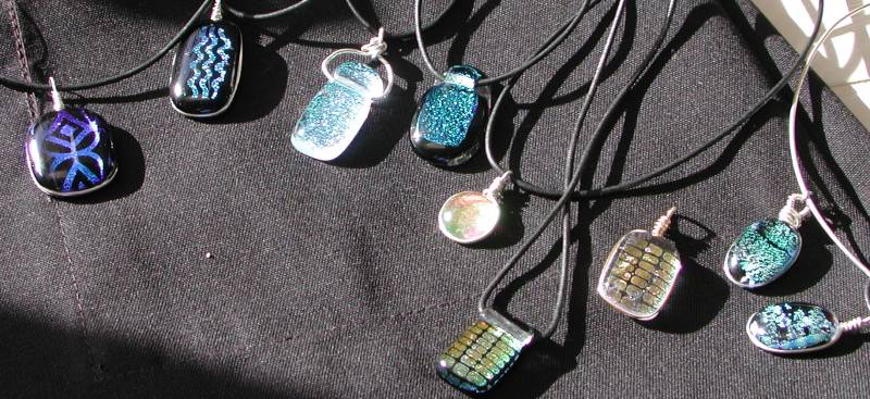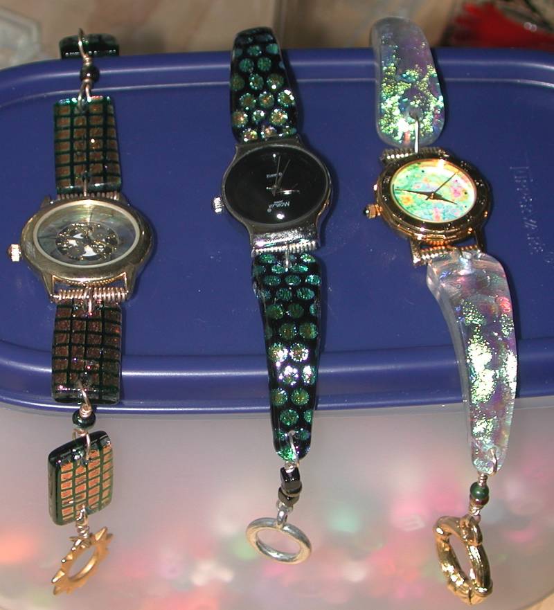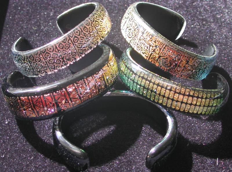 I've completed a number of fused glass jewelry items now. I love working with the dichroic and patterned glass! It's great to see the combination of glass and glass styles come together. I've added pictures of a lot of my recent work - Bracelets, Necklaces and Pendants, Earrings and Watches.